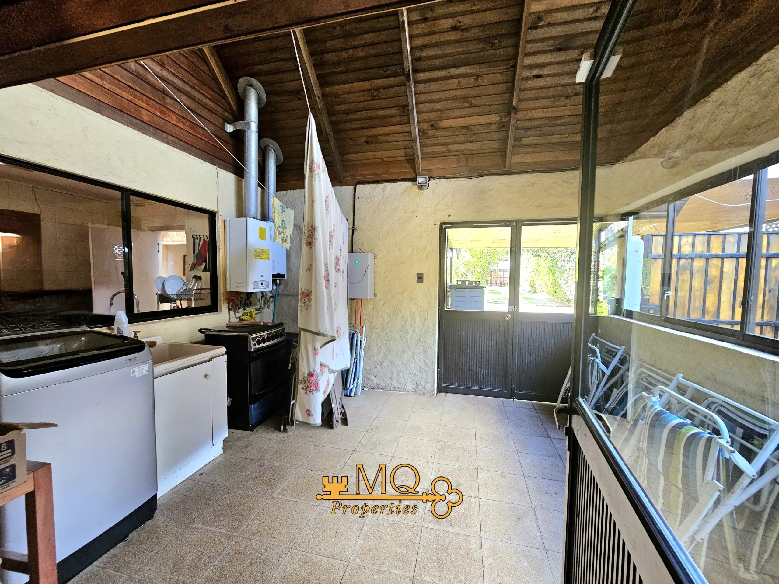 Además la propiedad cuenta con bodega en patio, hermoso quincho, amplia logia, piscina y estacionamiento techado.